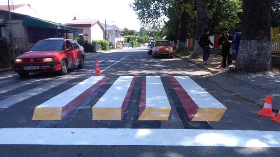 Der erste Fußgängerübergang mit 3D Streifen wurde auf der Straße Boris Sarafov in der Gemeinde Gjorche Petrov aufgemalt, als auch auf der Straße Samoilova gegenüber dem Museum für Moderne Kunst.